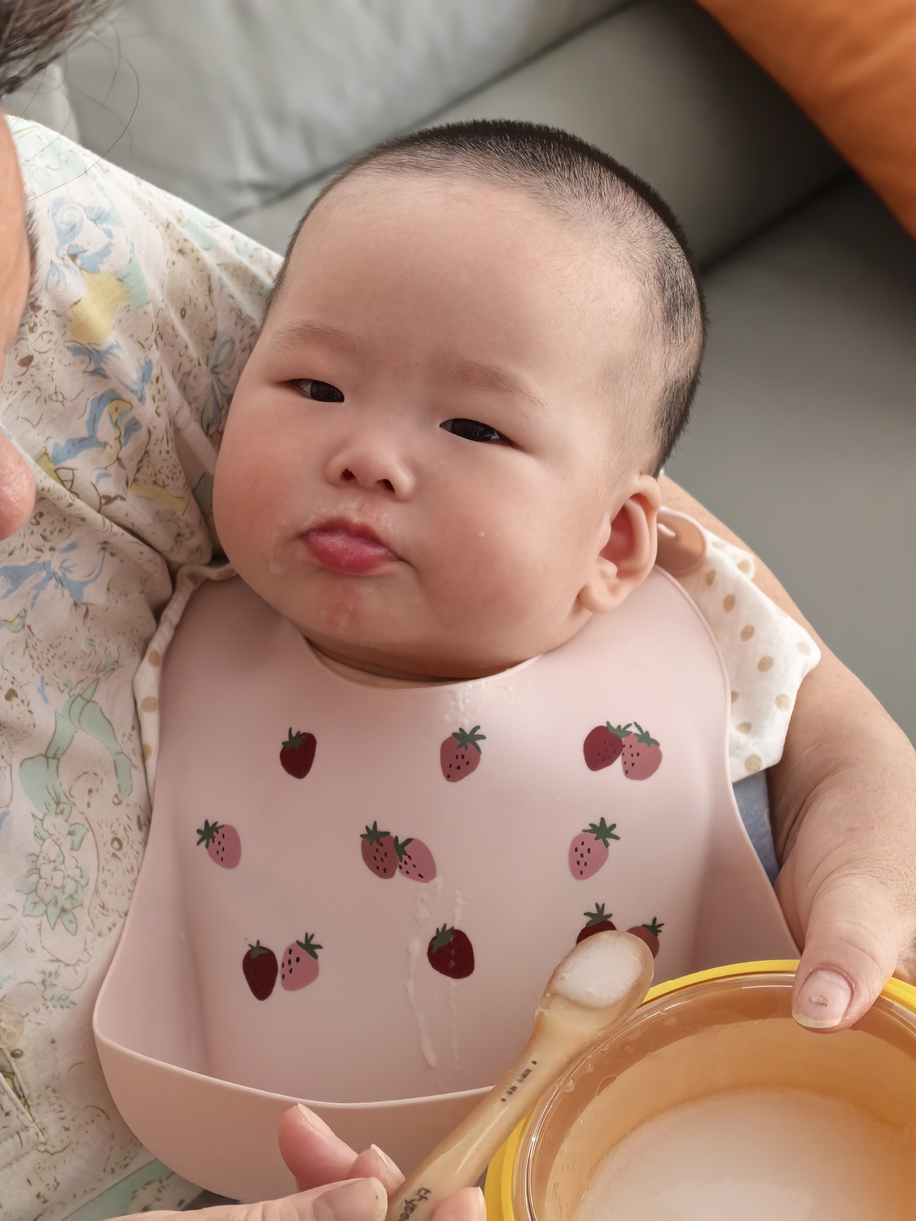 - 六个月的你开始会翻身了,每天会好动的一下不停,也开始会不停的喊妈妈,偶尔喊个爸爸,这个月你开始吃辅食咯。